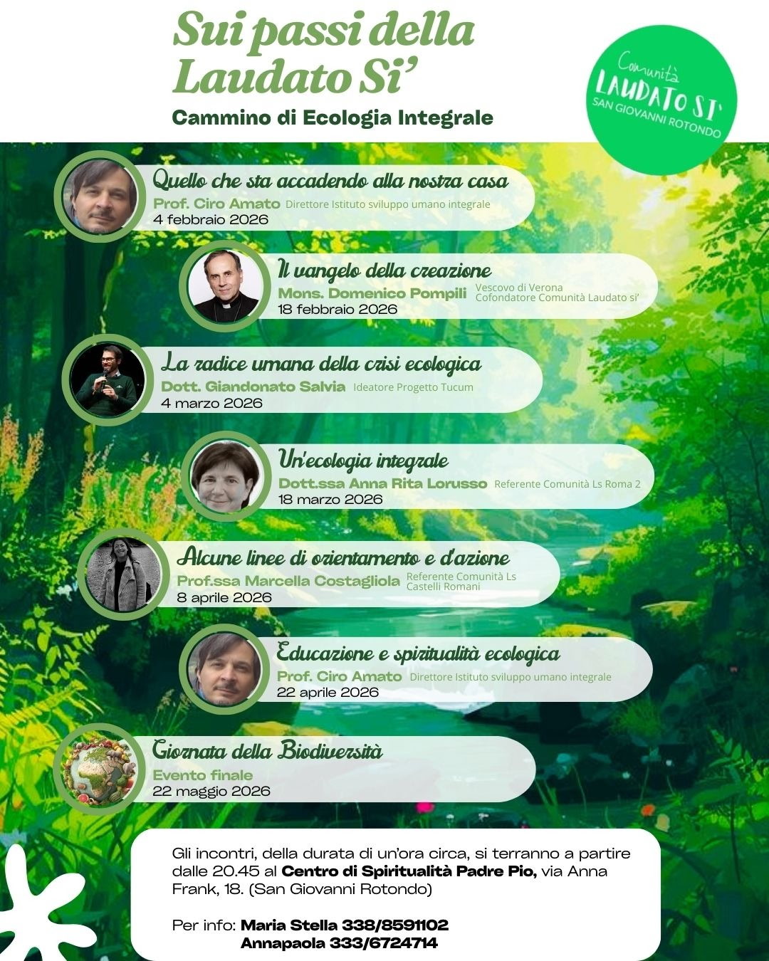 ALCUNI APPUNTAMENTI DELLA NOSTRA FORMAZIONE IN ECOLOGIA INTEGRALE 2026